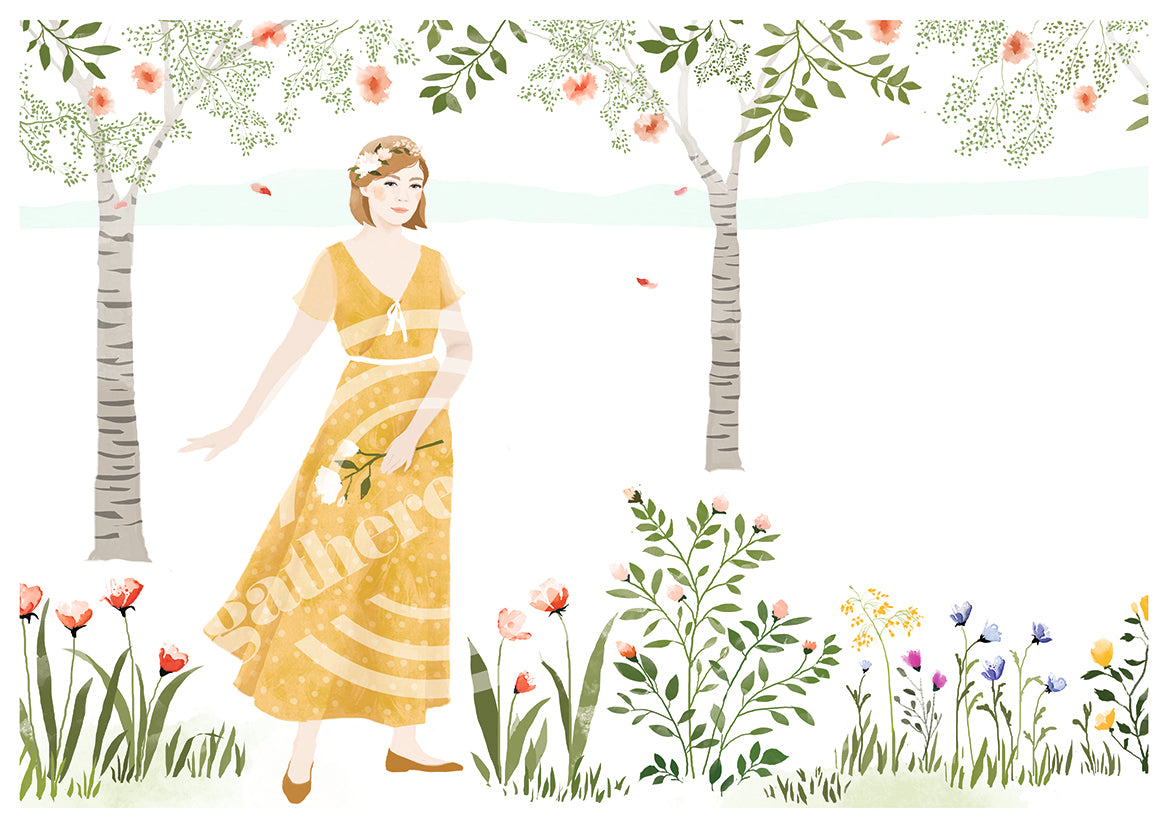 Nothing beats a spring-time walk when all the flowers are coming into bloom, which is beautifully captured in this digital painting by Mateja Kovac.