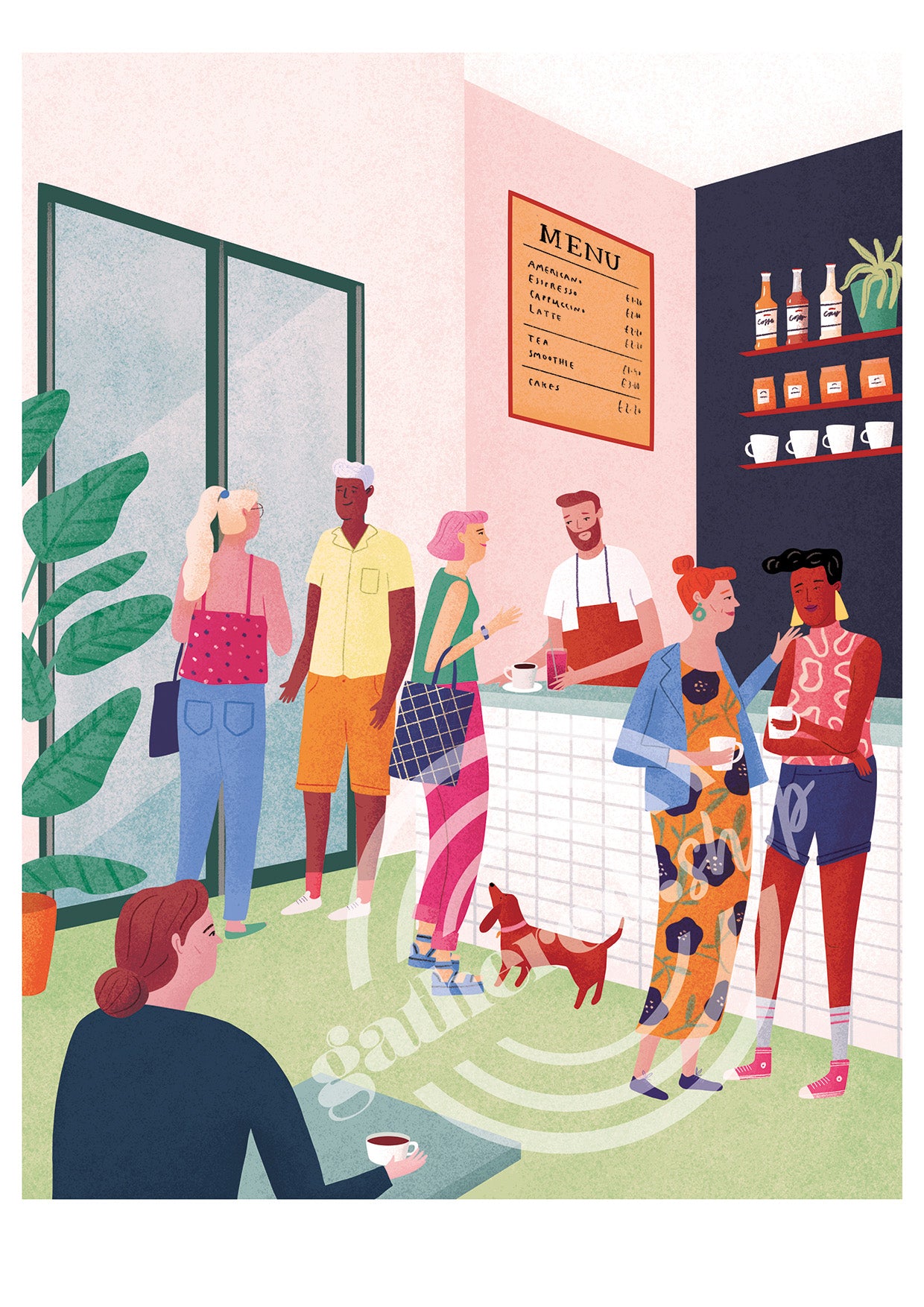 There's nothing quite like meeting up for a coffee with your bestie! This super-stylish digital illustration by Bett Norris captures the scene perfectly, and would make a fantastic framed print for your kitchen or breakfast bar.