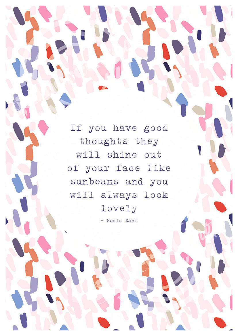 "If you have good thoughts they will shine out of your face like sunbeams and you will always look lovely" - Roald Dahl