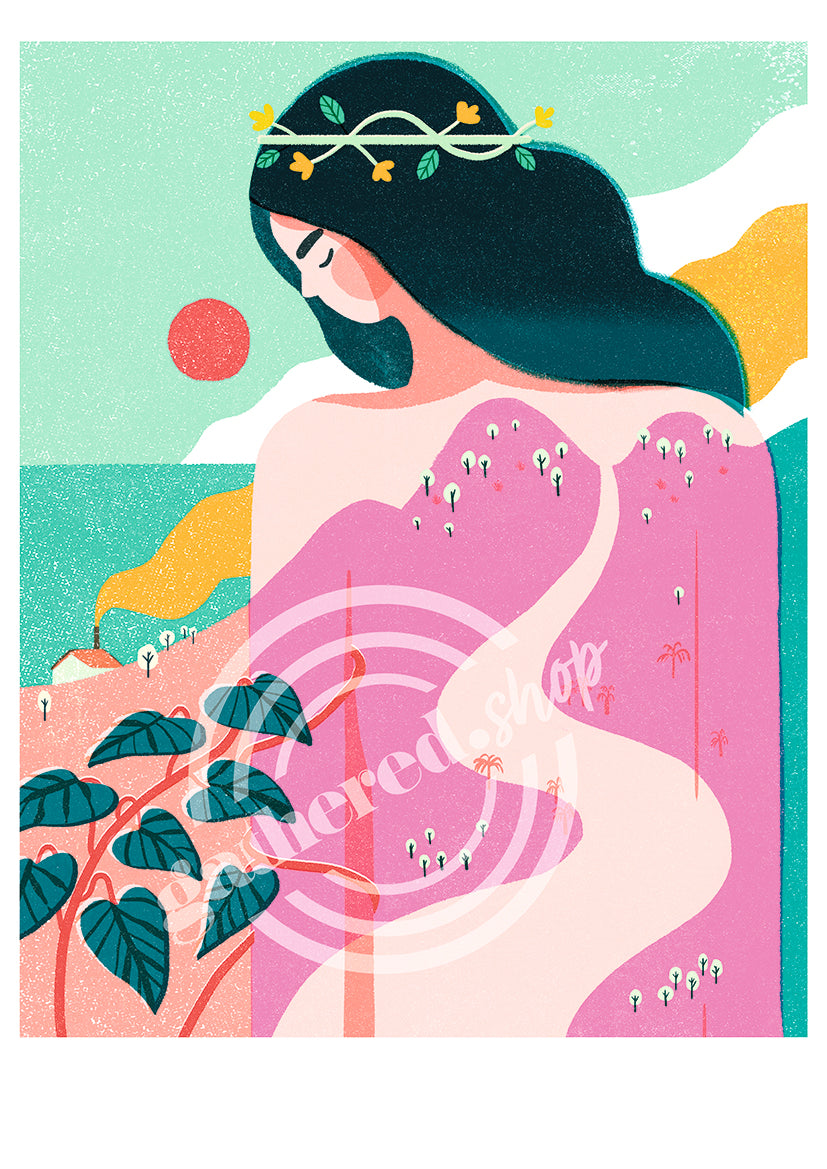 Feminine beauty and lush landscapes come together in this stunning digital illustration by Geraldine Sypiecco.