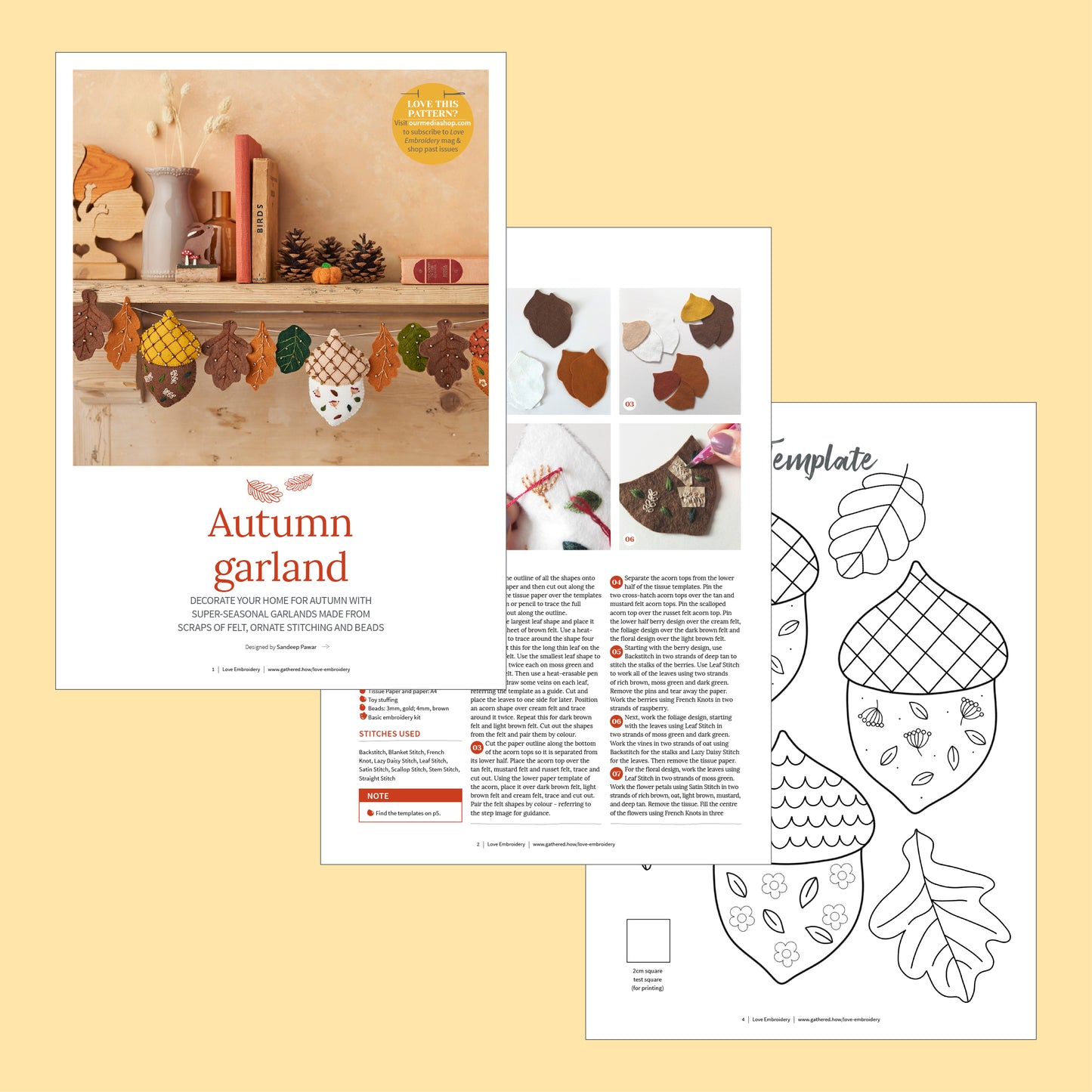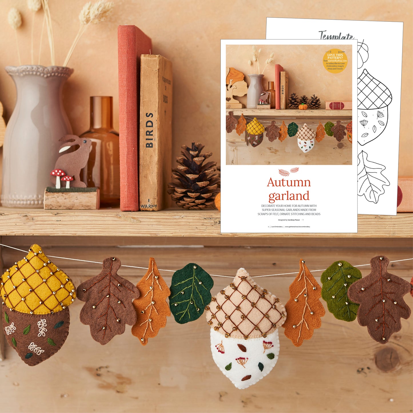 Felt Autumn Acorn Garland Embroidery Pattern PDF