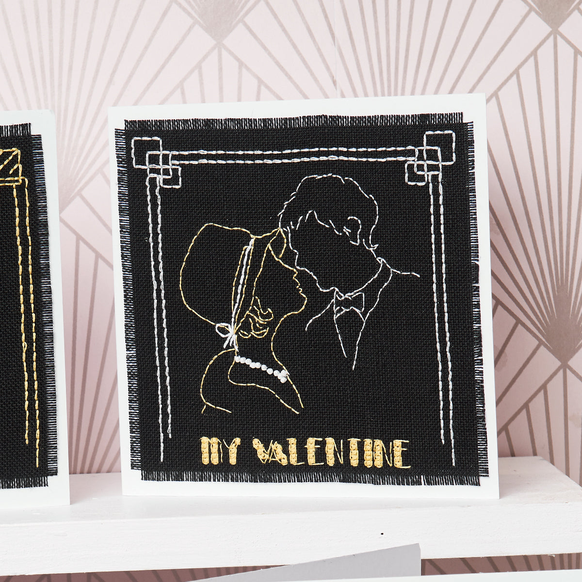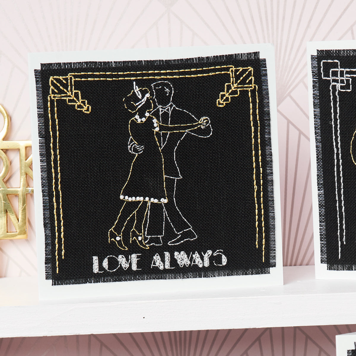 Declare your love any day of the year with these Art Deco inspired cross stitch designs. This set of 4 card-sized patterns are perfect for greetings to stitch for Valentine's Day, anniversaries, weddings, congratulations and more!
