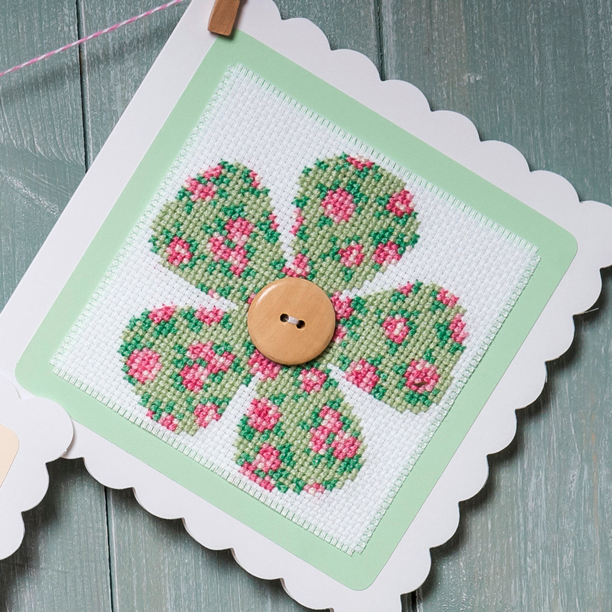 Great set of 6 easy beginner cross stitch patterns to make into cards, tags, embroidery hoop pictures, gift bags and more.