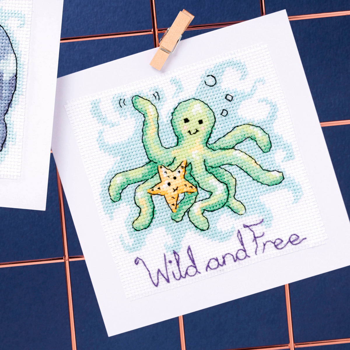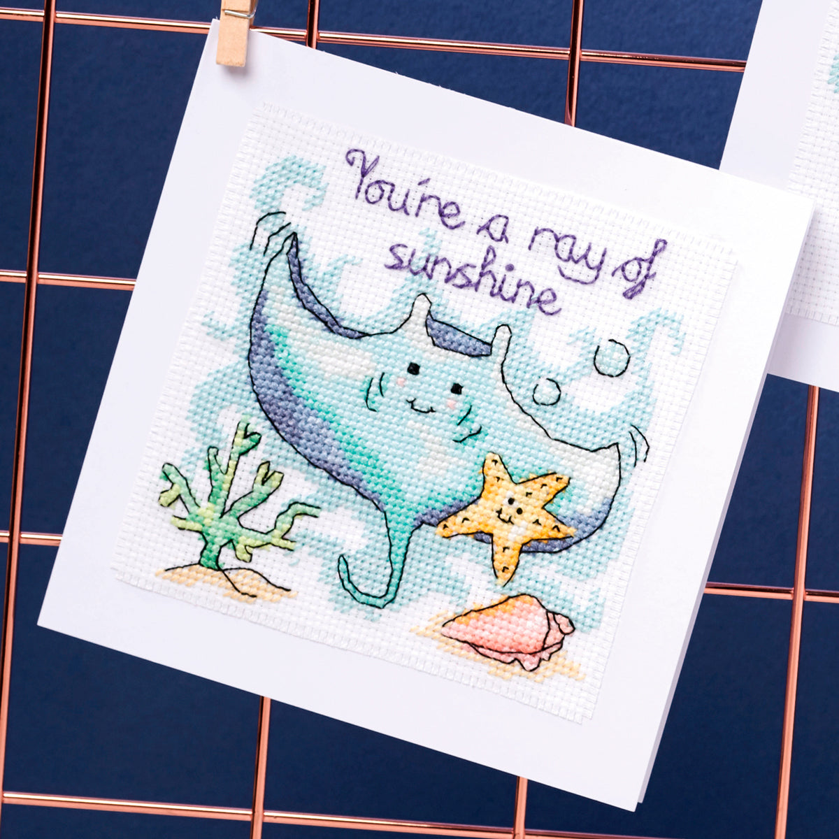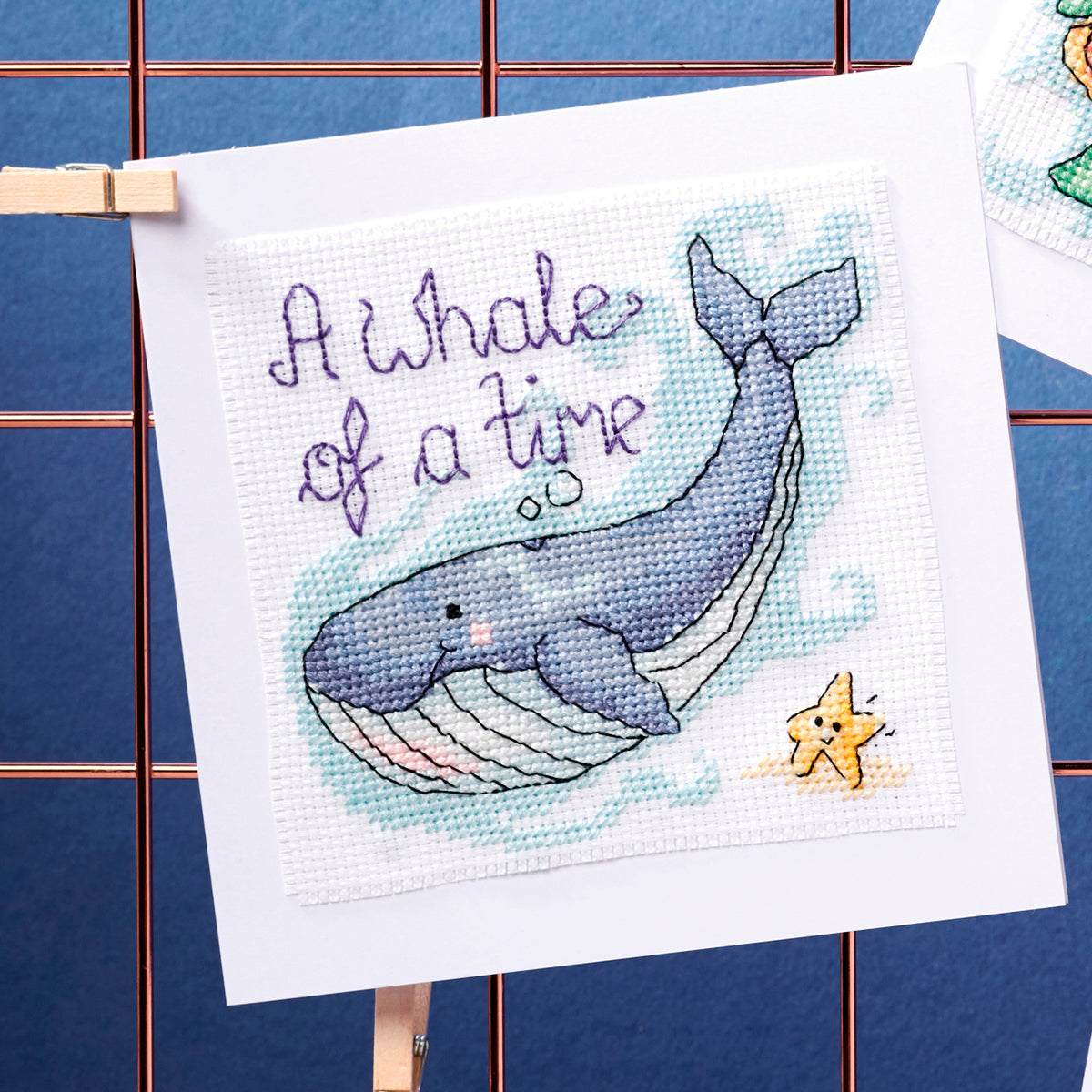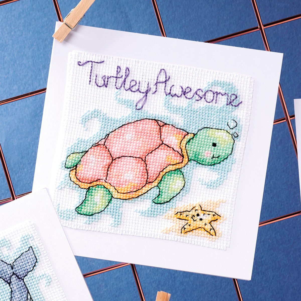 Brighten someone’s day with a beautiful ocean creature cross stitch card, complete with playful motivational sayings and puns. Featuring a whale, turtle, dolphin, octopus, seahorse and a ray, each with cute starfish.