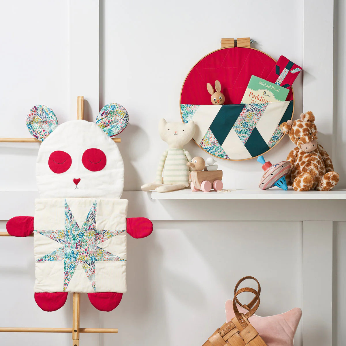 Collage of baby toys and bibs with a focus on colorful and patterned designs.