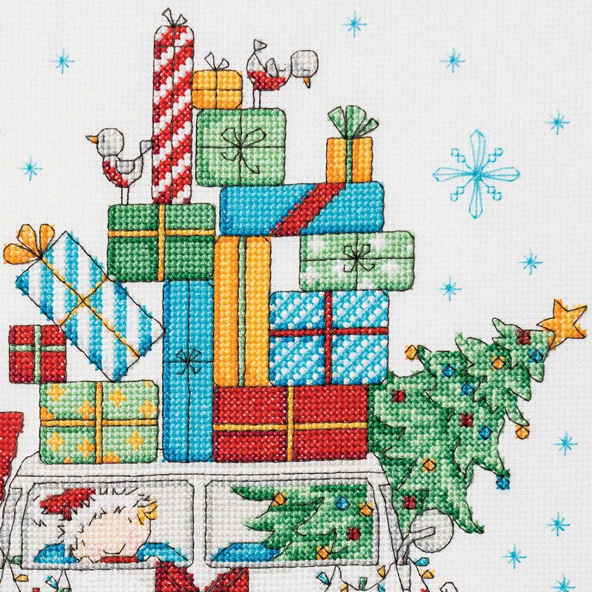 If you or someone you know can't wait for Christmas, this fabulously festive RV campervan chart will keep the excitement rising as you stitch the gifts, tree, wreath and more in this fun scene. Patterns designed by Durene Jones.