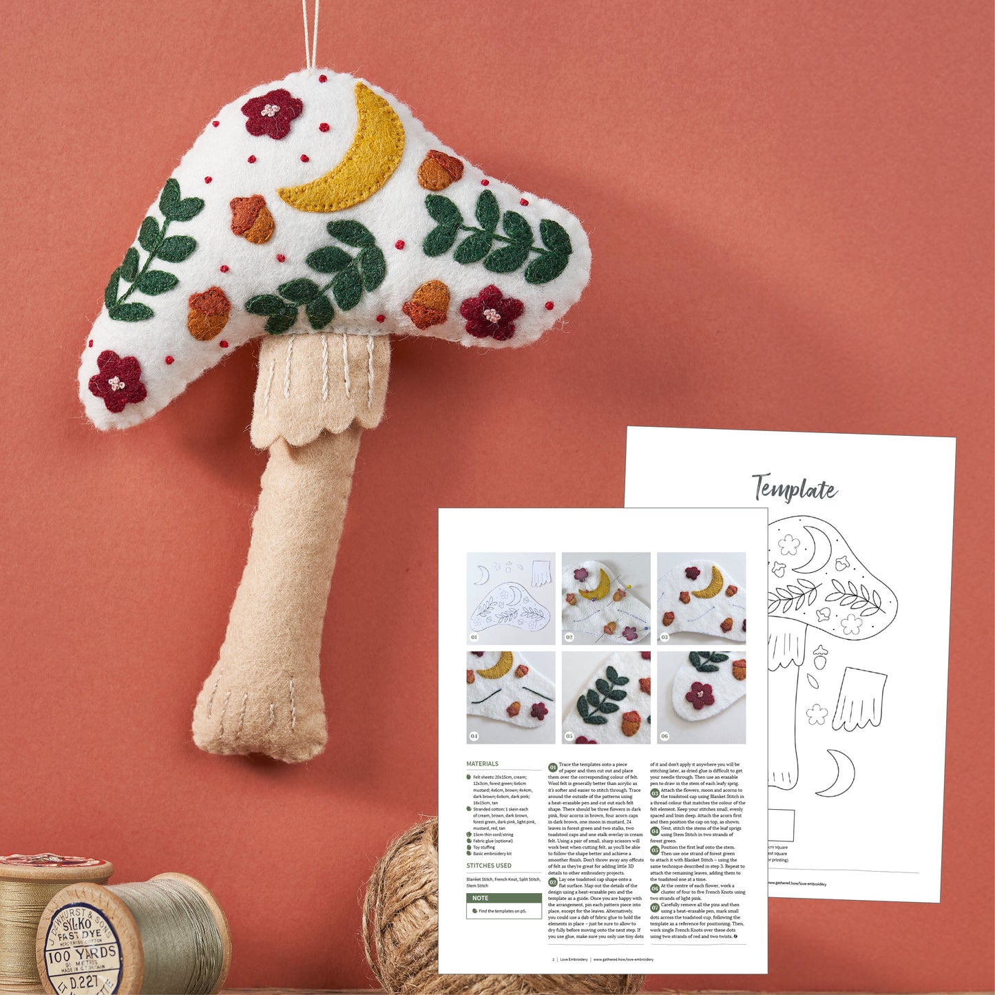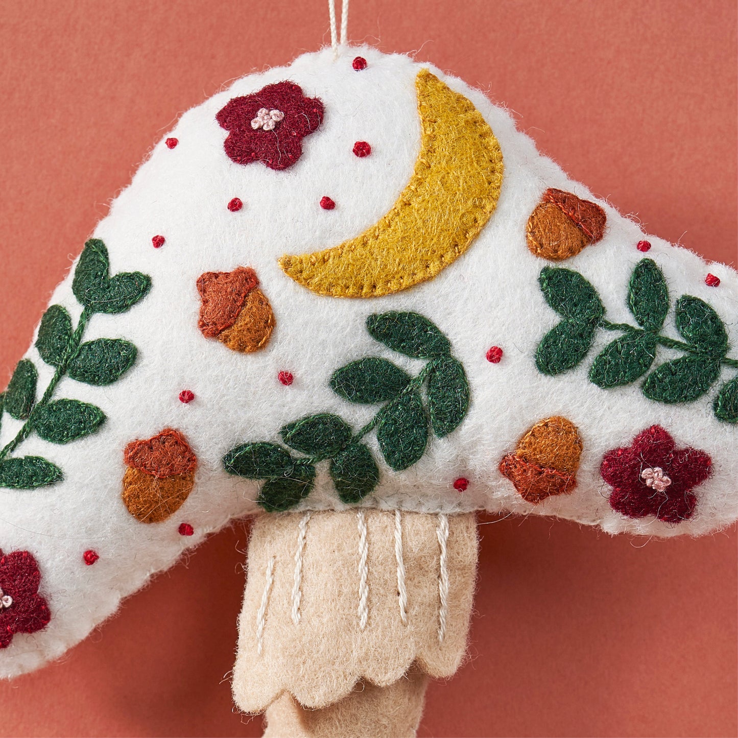 Take a creative cue from the natural world and stitch a whimsical, three-dimensional toadstool decoration using felt and thread.
