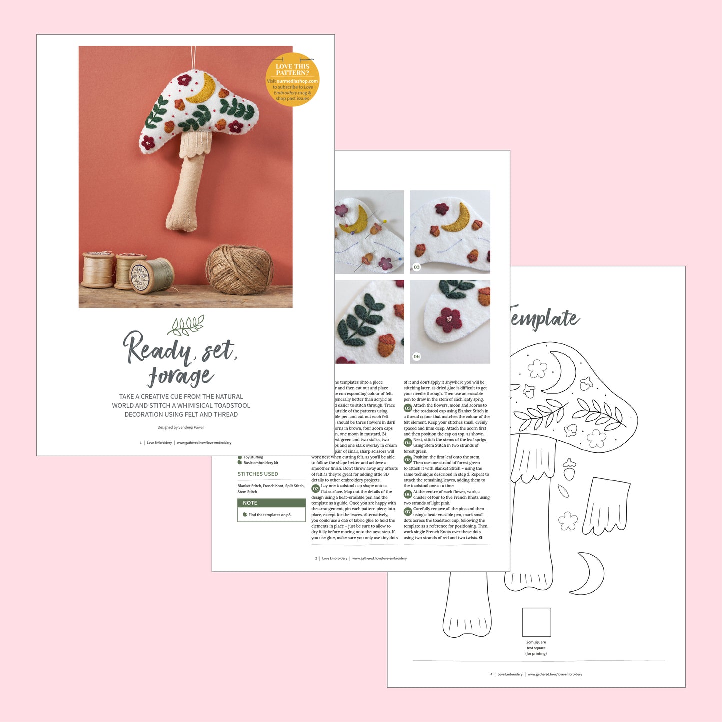 This Felt Autumn Toadstool Decoration was designed by Sandeep Pawar and was first published in Love Embroidery magazine issue 43.