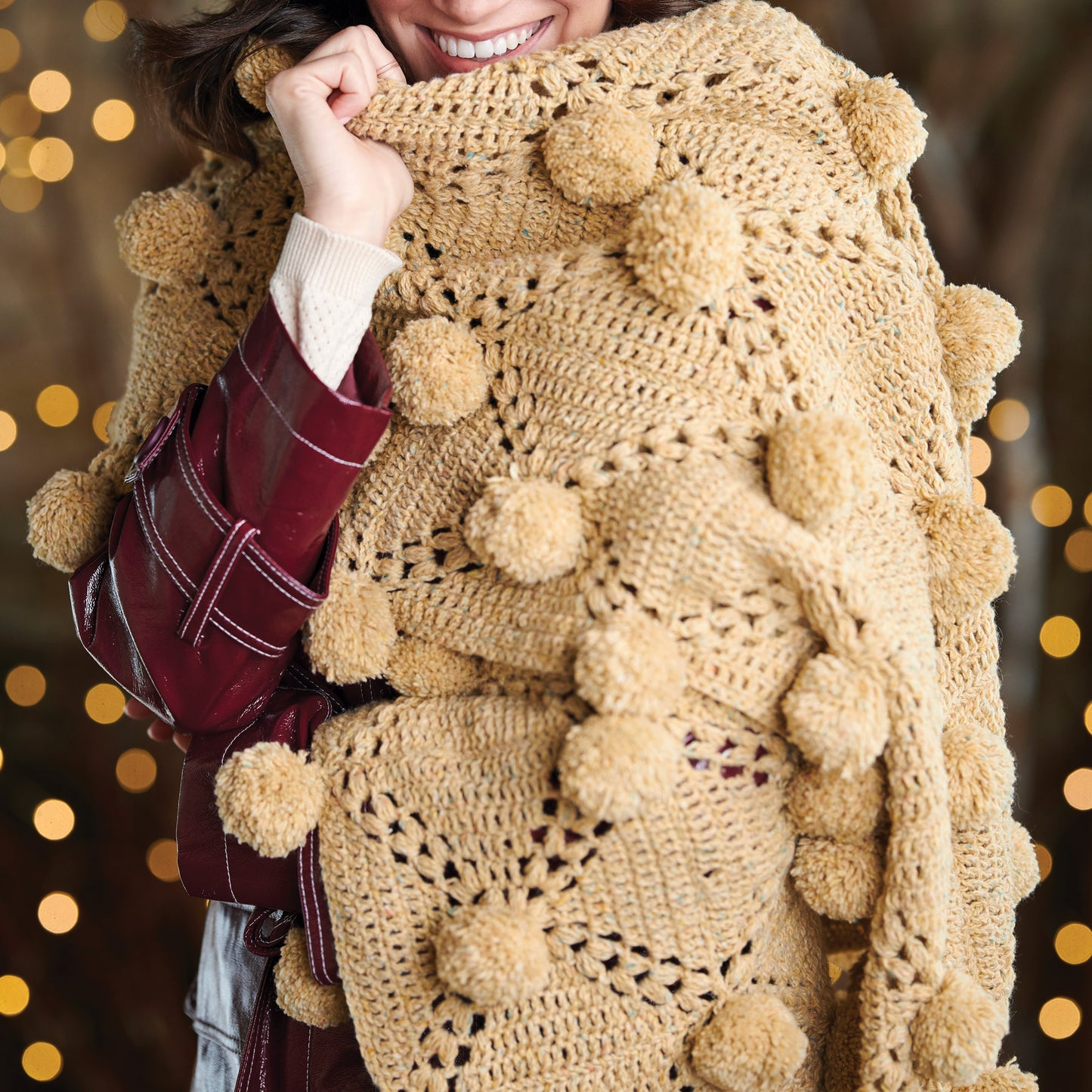 Sometimes a project is more than the sum of its parts – here lots of easy motifs and pompoms are joined together for a simple project that would make a fantastic gift. Hook up Cassie Ward's pompom crochet shawl pattern and enjoy wearing your pom poms.