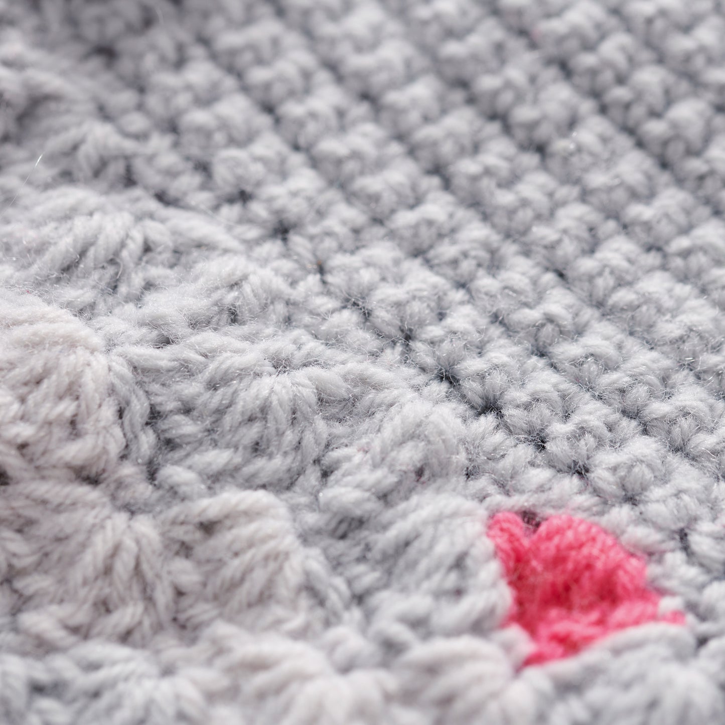 Shell stitches are picked out in pink within Pat Strong’s pretty crochet baby dress pattern. For the more adventurous crocheter, try adding different pops of colour to other rows of the dress for a dotty effect.