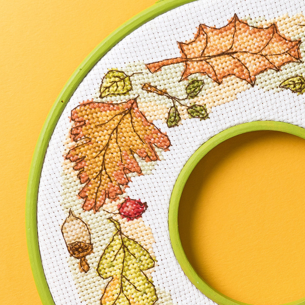 Stitch seasonal leaves, berries and acorns to display or present as a great handmade gift.