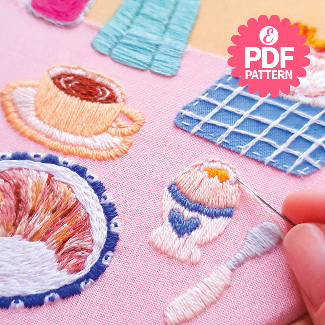 Capture the beauty of a delicious brunch - in thread - using a sugary retro palette and 6 easy peasy embroidery stitches.
