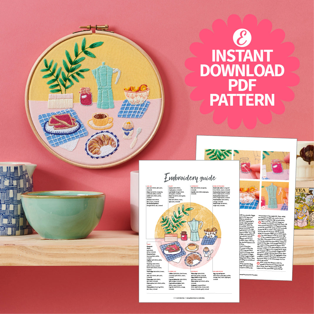 What better way to start the day than with a spread of fresh pastries and a steaming pot of coffee? Throw in some embroidery and it’s a match made in heaven! Stitch a bit each day, then hang it in your kitchen for a cheery boost every morning.