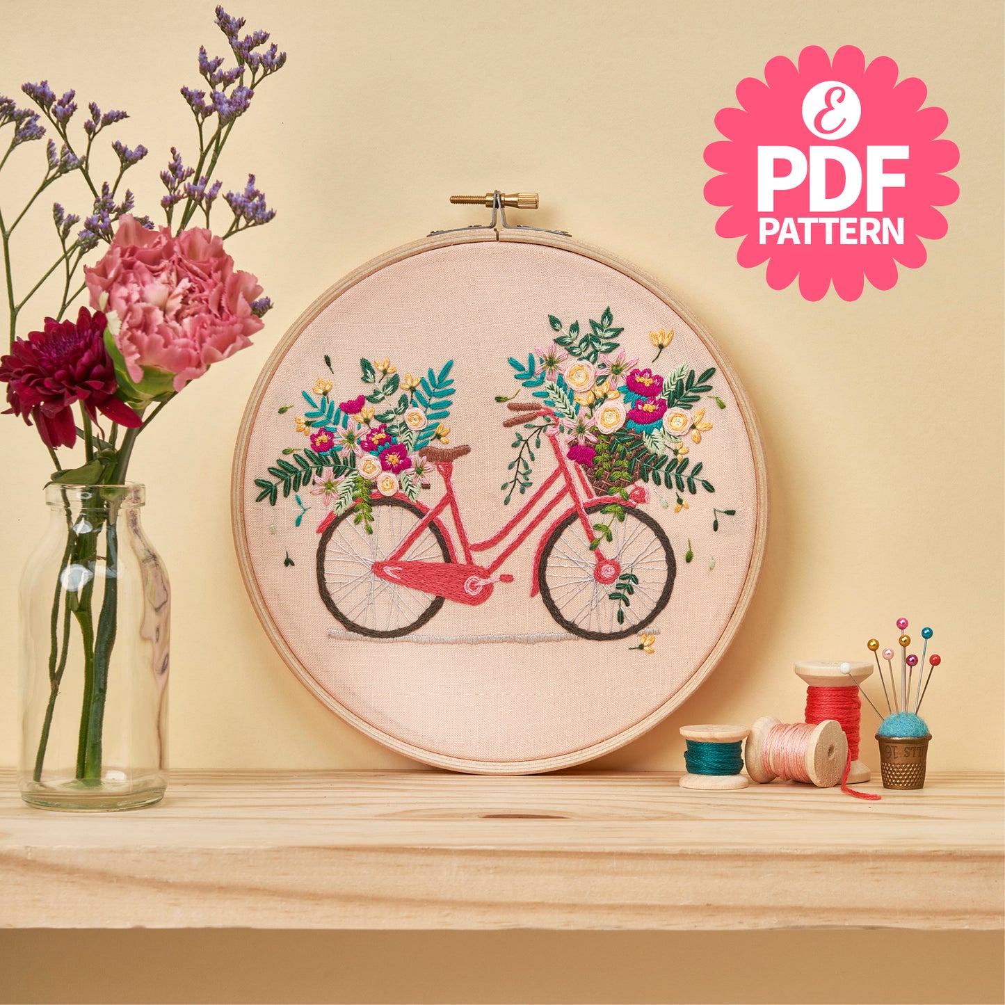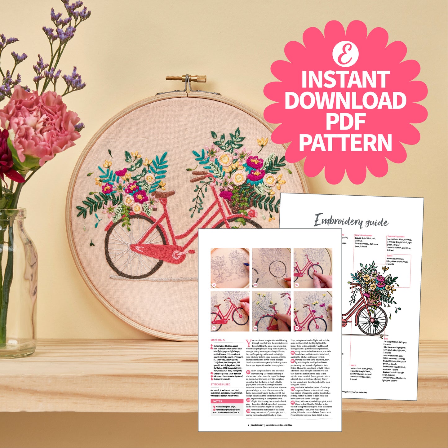Master eight essential embroidery stitches and dream about your next outdoor adventure as you sew our flower-packed bicycle hoop...