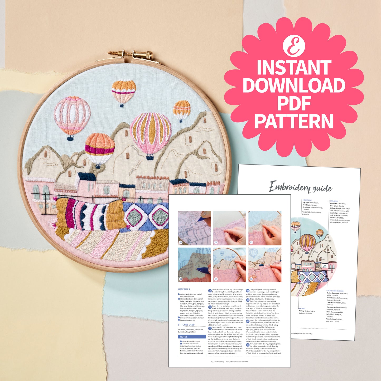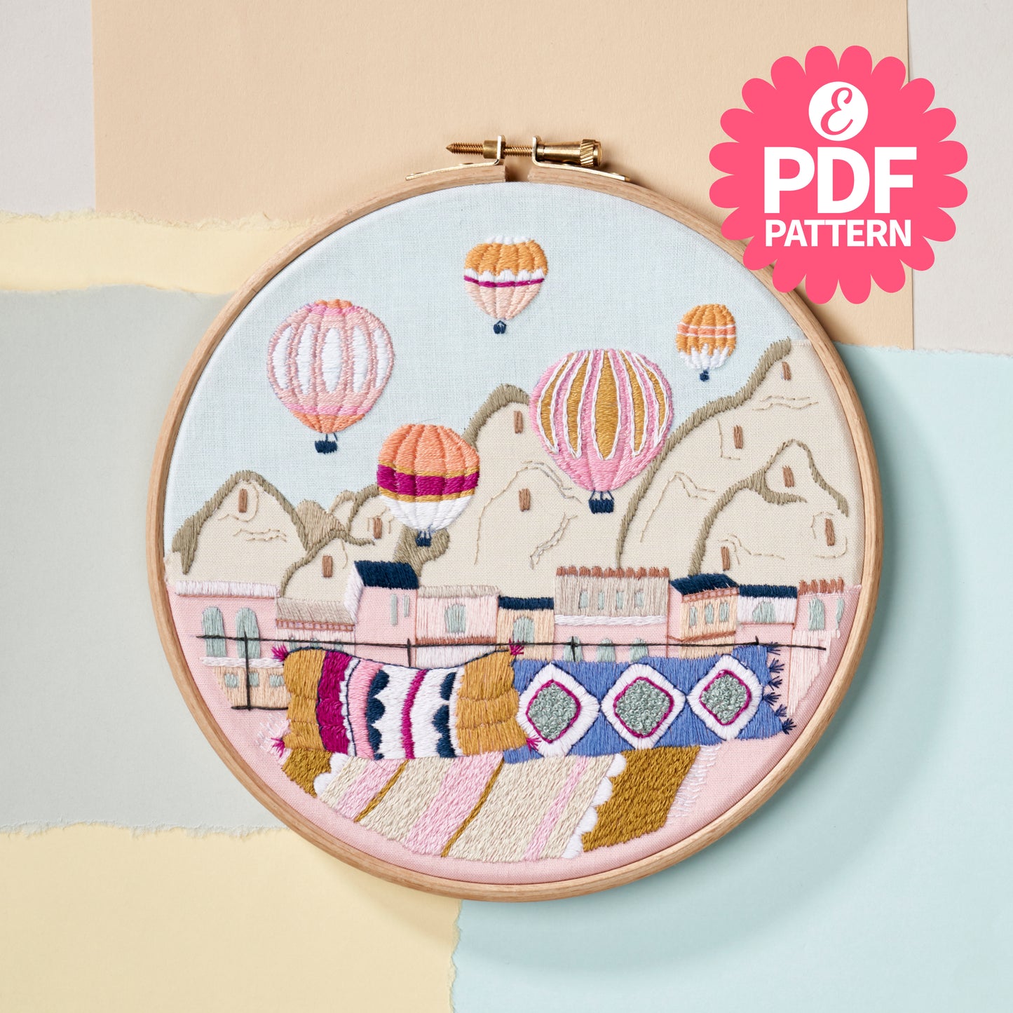 Hot Air Balloons Embroidery Hoop Pattern PDF
