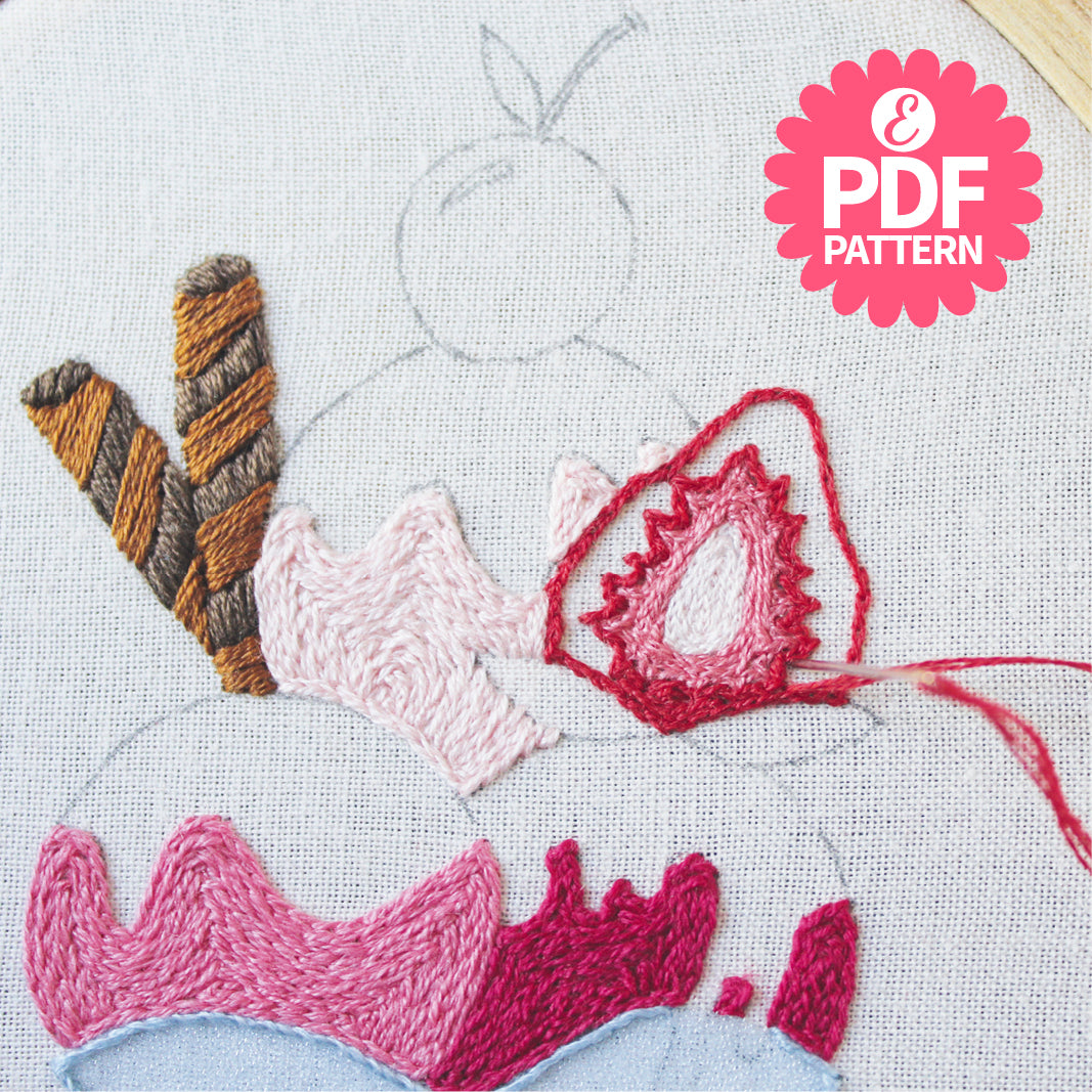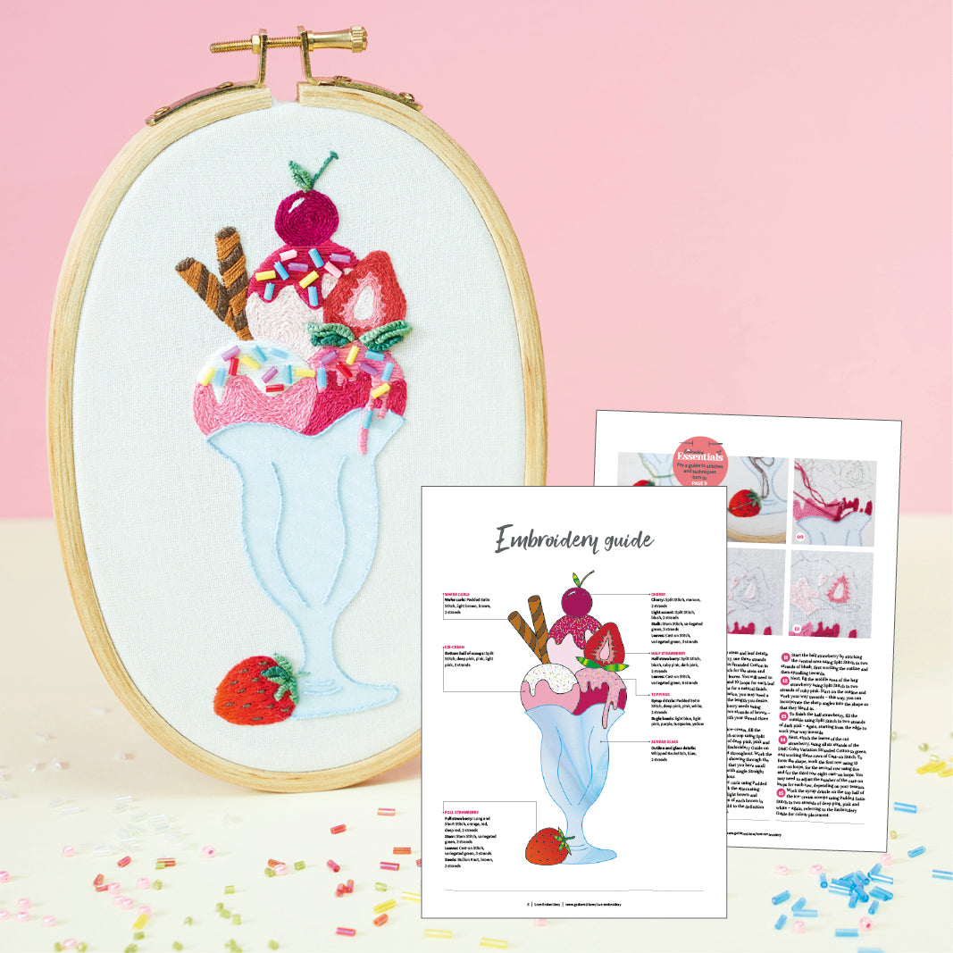 I scream, you scream, we all scream for ice-cream! With summer just around the corner, what better way to celebrate than with this delicious design? Featuring lots of fun stitches like Padded Satin Stitch, Bullion Knots and Whipped Backstitch, this decadent sundae – topped with a chocolate wafer, ruby red strawberry and sweet syrup drizzle – is filled to the brim with tasty texture. And it’s perfect for stitching in the sunshine too. Time to dig in...
