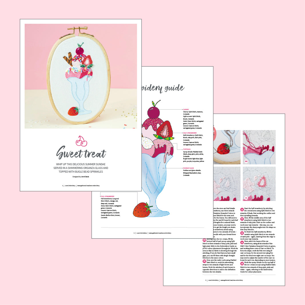 This Ice Cream Sundae Embroidery Hoop Pattern is designed by Jenni Davis and was first published in Love Embroidery magazine issue 41.