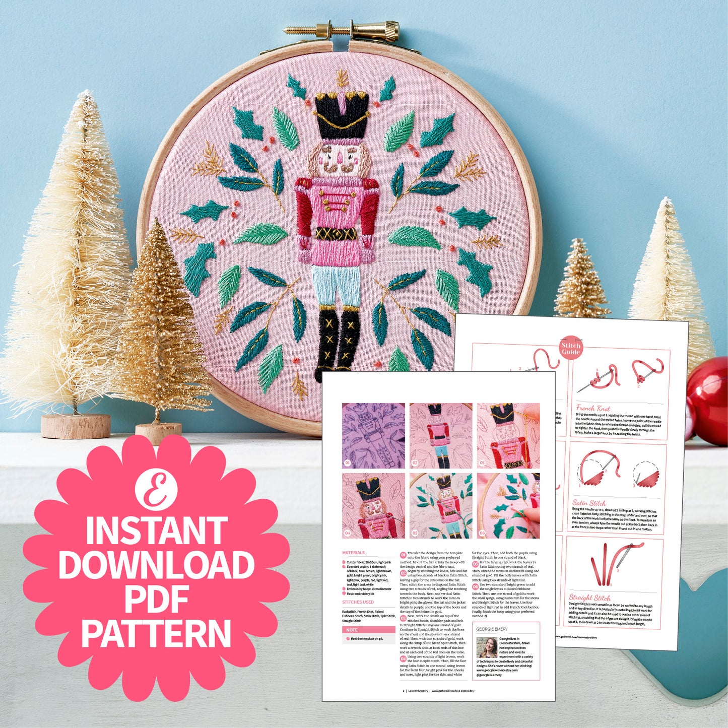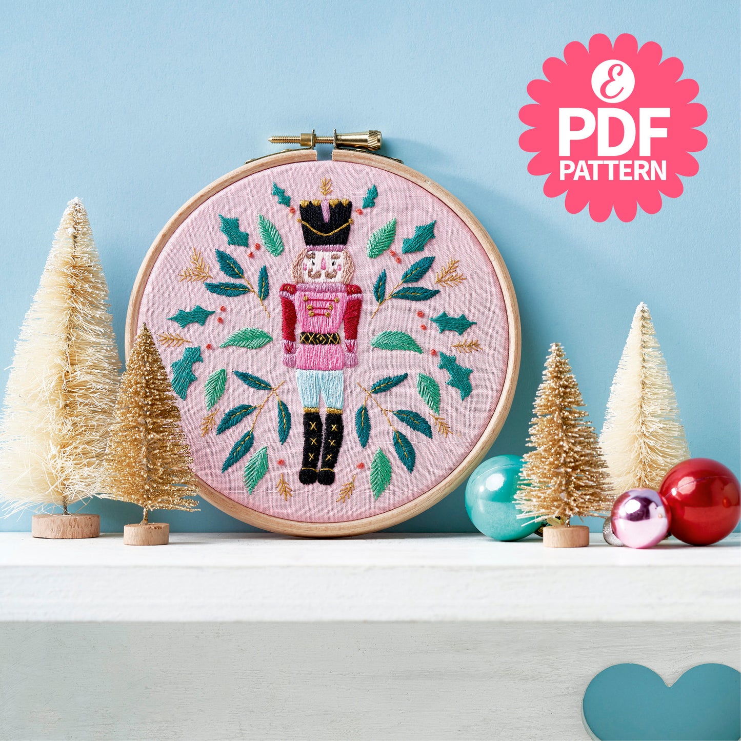 Give the iconic Nutcracker figure a modern makeover using six essential embroidery stitches, and dash of pink, blue and gold embroidery thread!