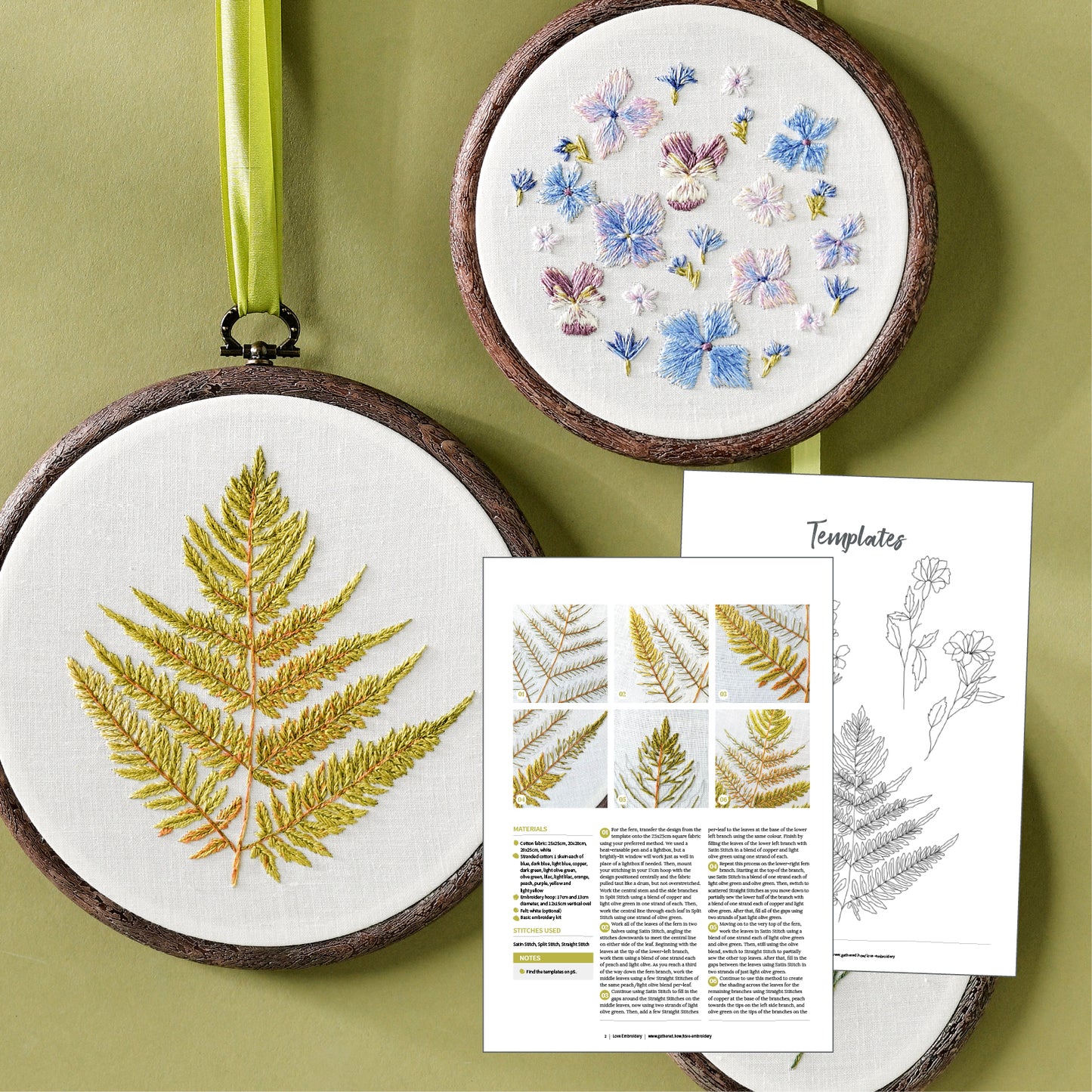 Designed to look just like freshly pressed petals, ferns and flowers, the three hoops capture the timeless beauty of preserved plants using needle and thread. They make gorgeous gifts for green-fingered pals and fans of vintage décor, and can whipped up using just three beginner-friendly stitches.