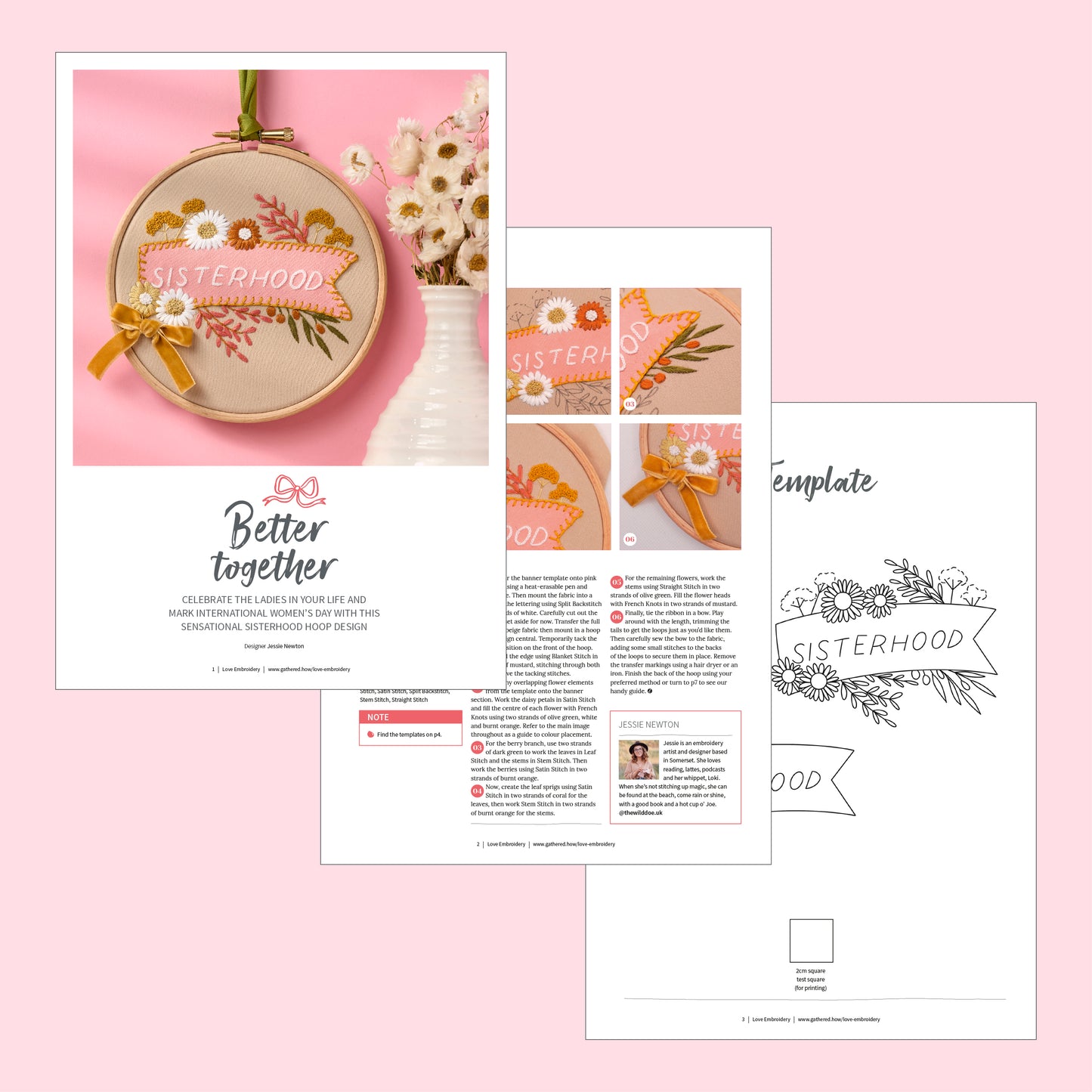 Celebreate the amazing ladies in your life, and mark International Women's Day with this sensational sisterhood hoop design by Jessie Newton (aka The Wild Doe).