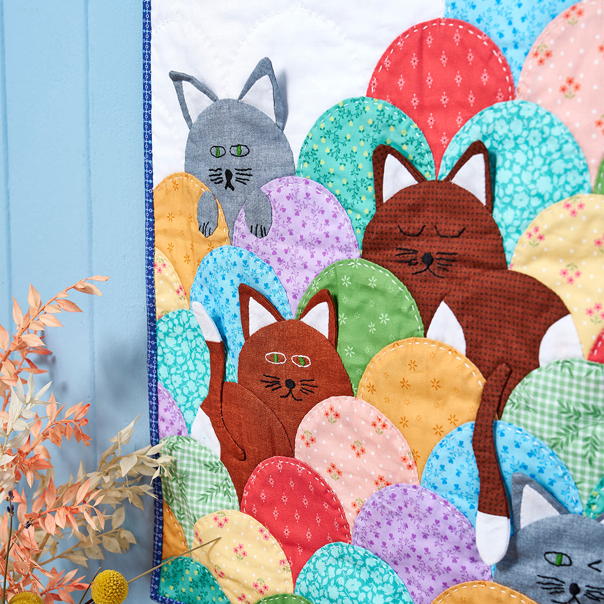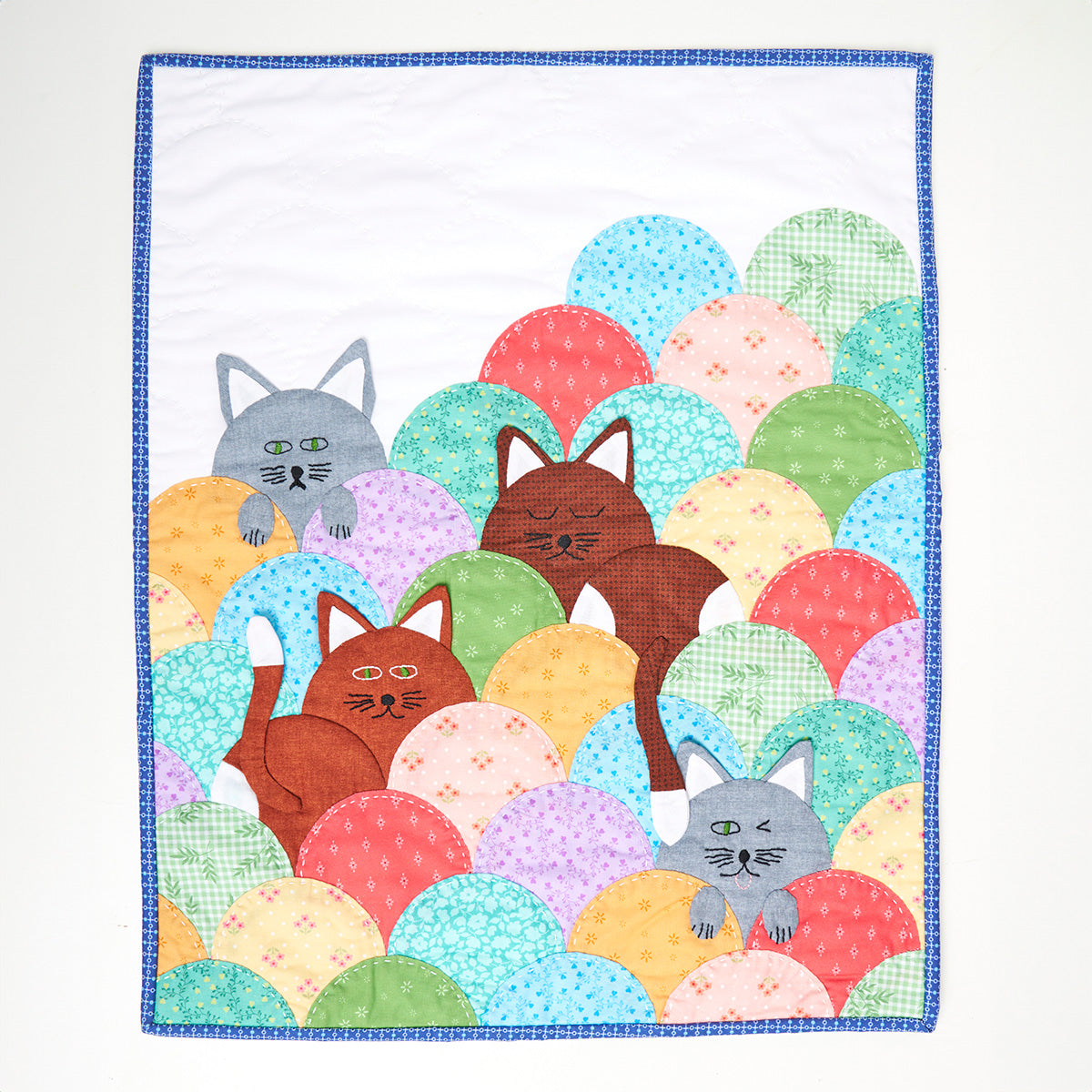 Cat-lovers everywhere will adore to have these kitties on their lap. Paper piecing scallops is a lot of fun and an easy way to create a mini quilt.