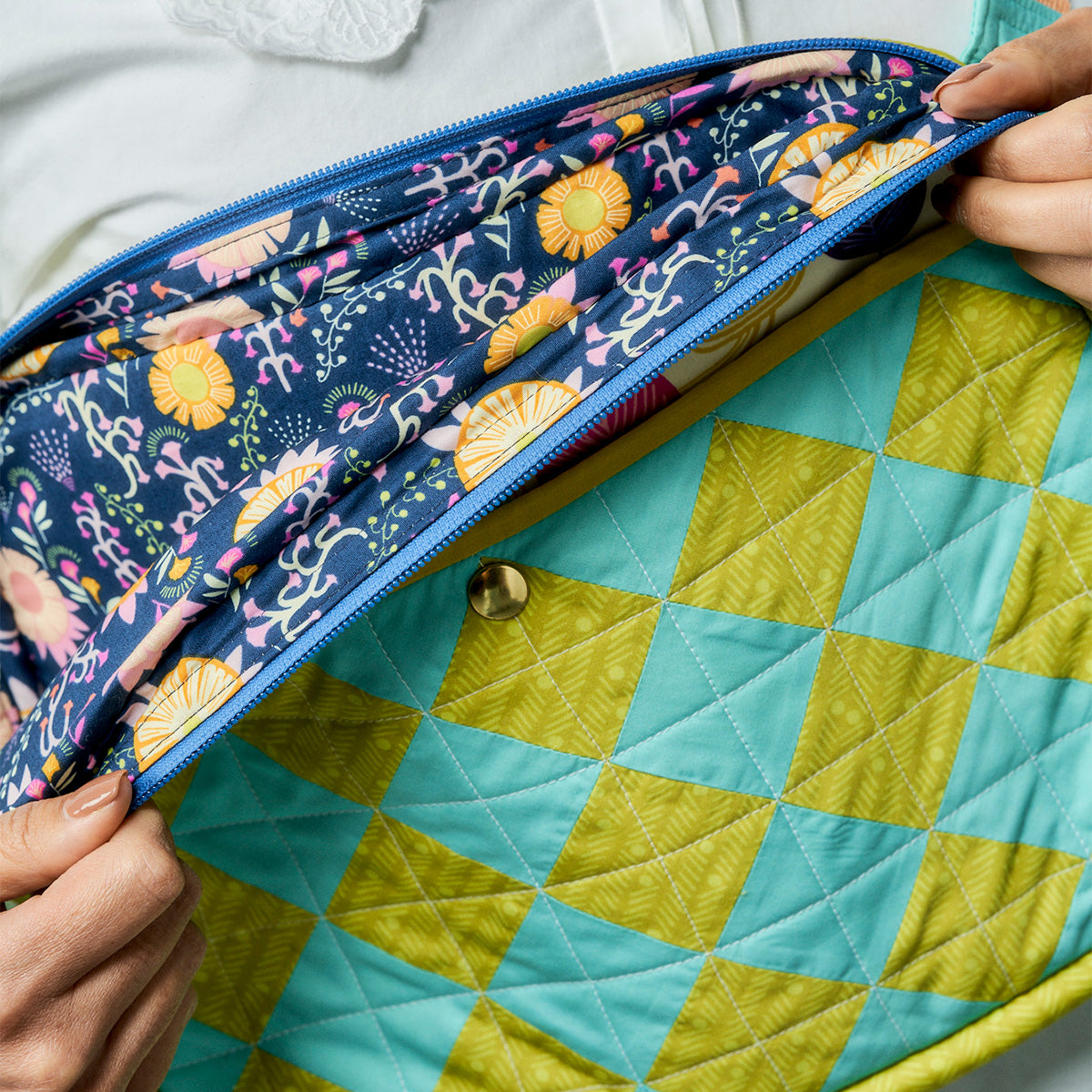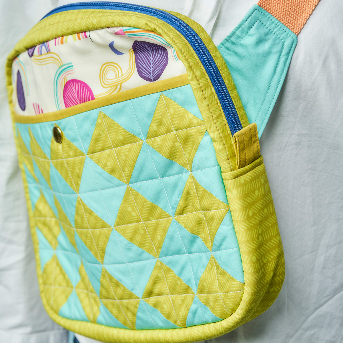 Mix and match fresh and colourful fabrics to create this cute crossbody bag for carrying all your essentials. With a front pocket, zip and adjustable strap, it's as practical as it is pretty.