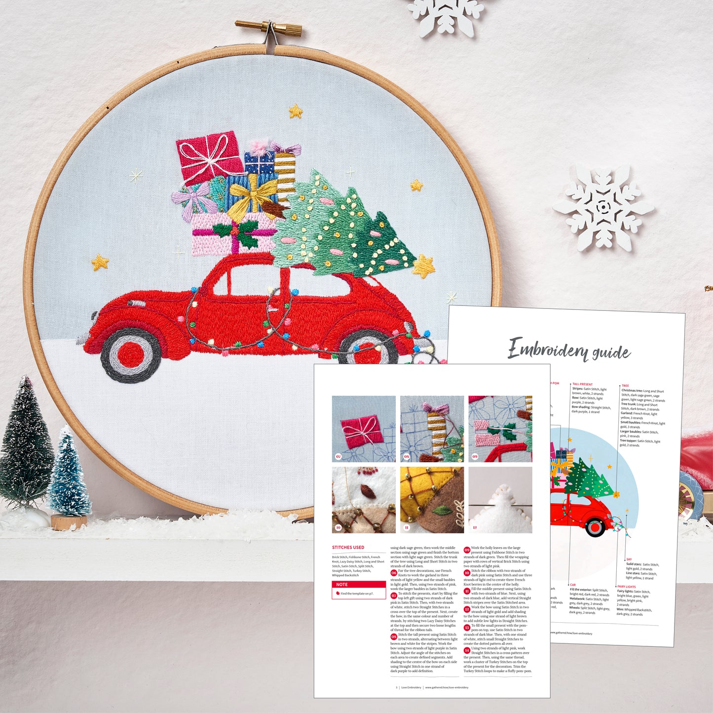 There’s nothing quite like the excitement of being in a gift-packed car with the Christmas tunes blasting, as you head home for the holidays, and now, you can capture that magical feeling in stitches with this nostalgic hoop. Teeming with charming details such as colourful presents, bright fairy lights, and a perfectly decorated Christmas tree, all perched atop a classic ruby-red car, you’ll work 10 stitches in a modern festive thread palette to bring this heartwarming holidays scene to life.