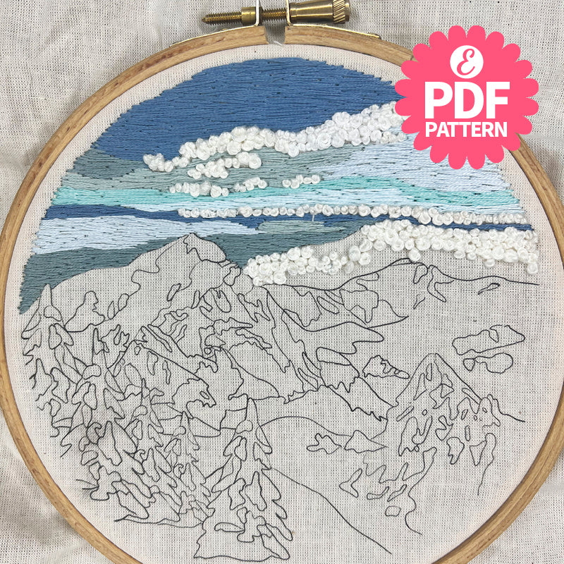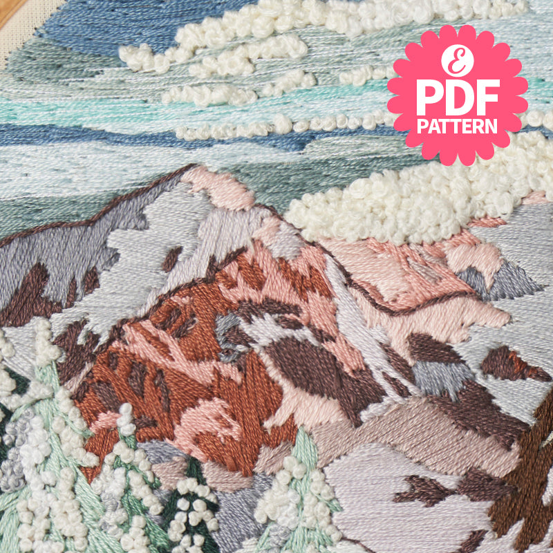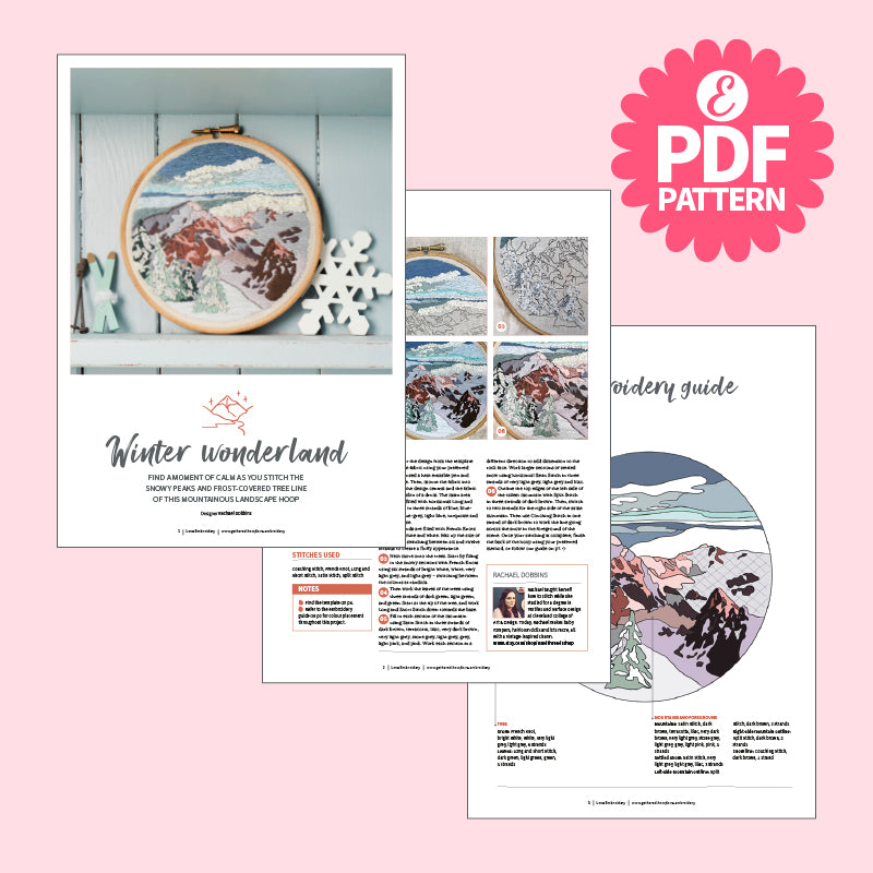 Escape to a winter wonderland and find a moment of calm as you stitch the snowy peaks and frost-covered tree line of this mountainous landscape hoop.