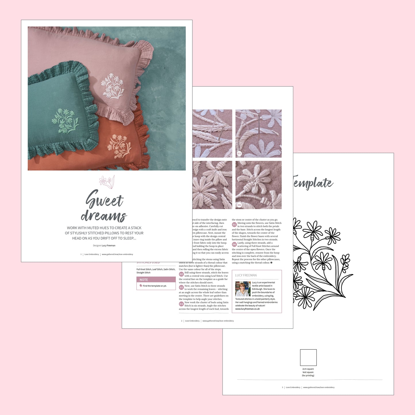 This Pillowcase Flower Motif embroidery pattern has been designed by Lucy Freeman and was first published in Love Embroidery magazine issue 43.