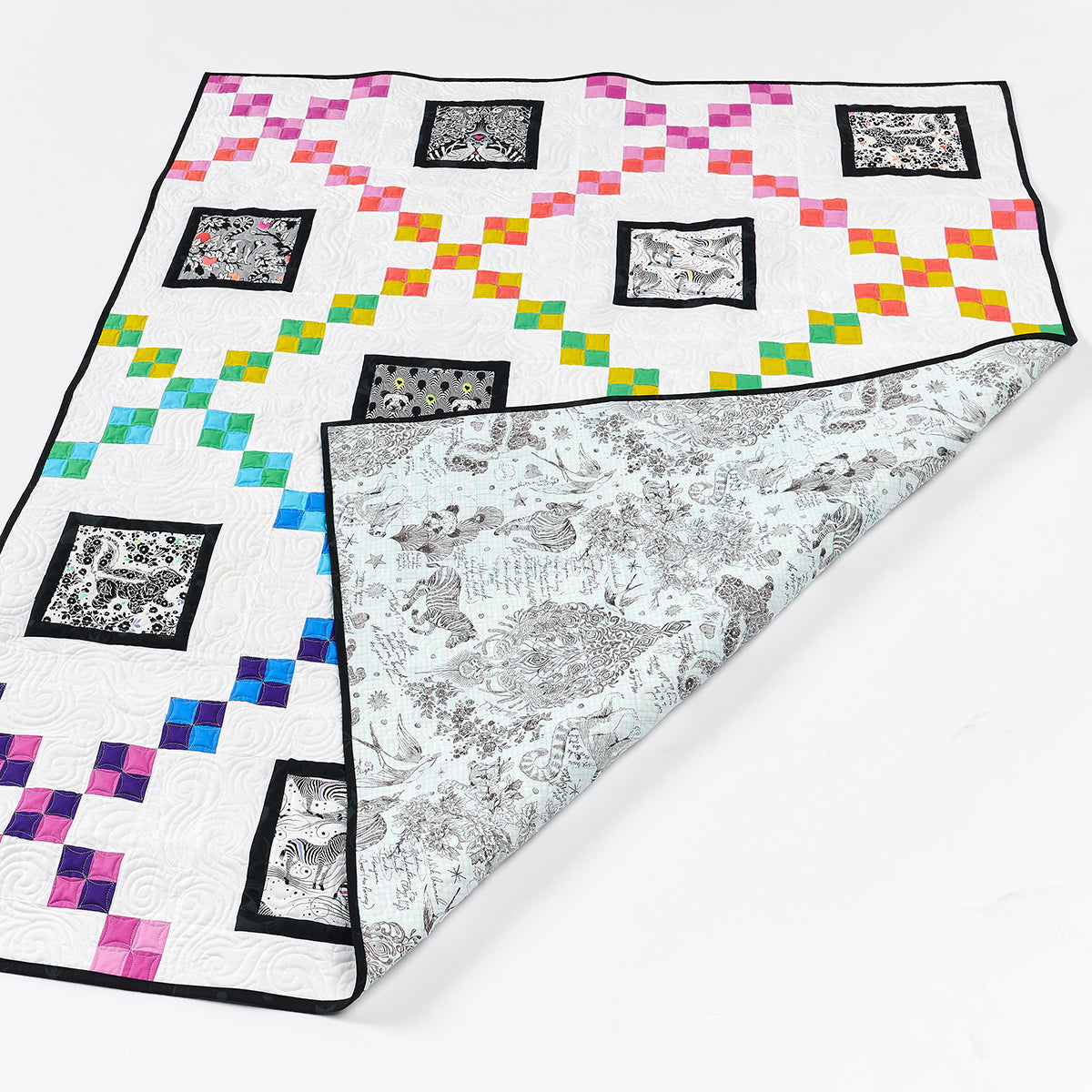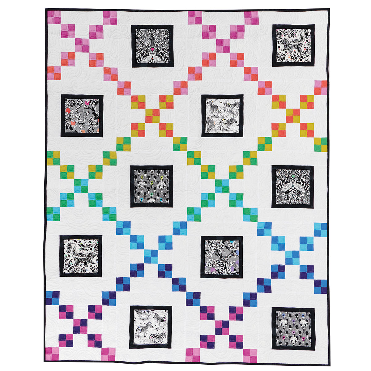 Give classic Irish Chain inspiration a technicolour twist with fussy cut feature prints and saturated solids. This digital sewing pattern by Kelly Bowser features in-depth instructions, full-colour photos and digital illustrations to help you sew your own modern Irish Chain quilt.