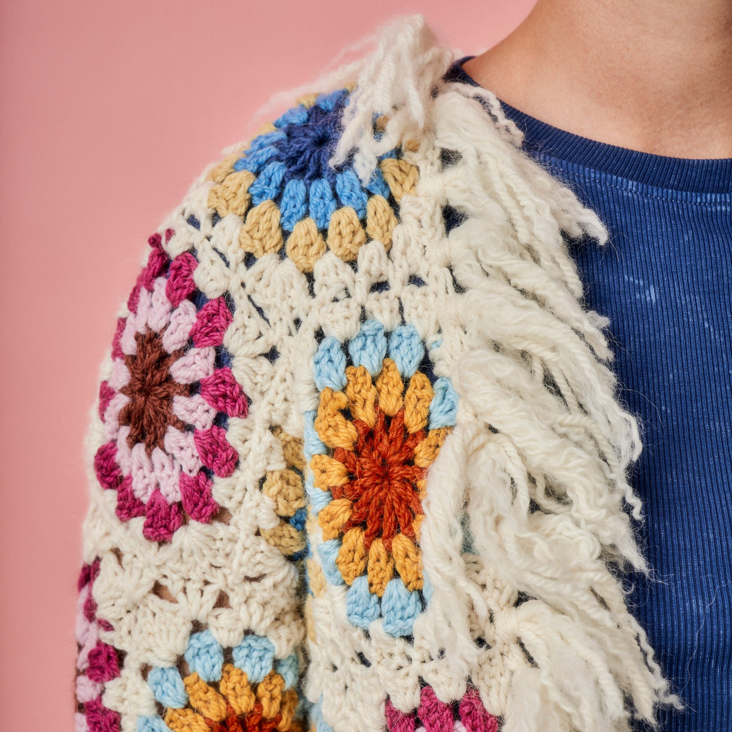 Hook yourself a cosy cardi perfect for those September days you’ll need to layer up but you still want to bring the sunshine with you. Let Cassie Ward’s bold crochet granny square jacket pattern do all the talking for you this season.