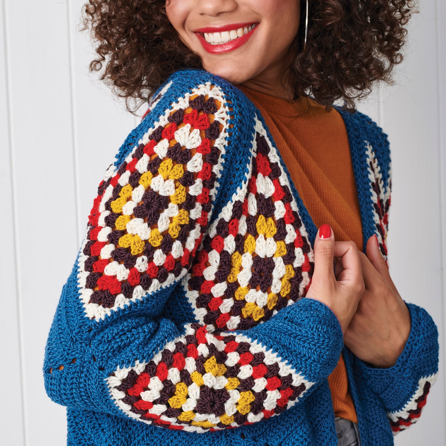 Make this granny square cardigan crochet pattern your next project! Granny squares are used to create this fun cardigan for an exciting take on this classic crochet motif. Fringing adds a charming finish that lets the garment truly flow.